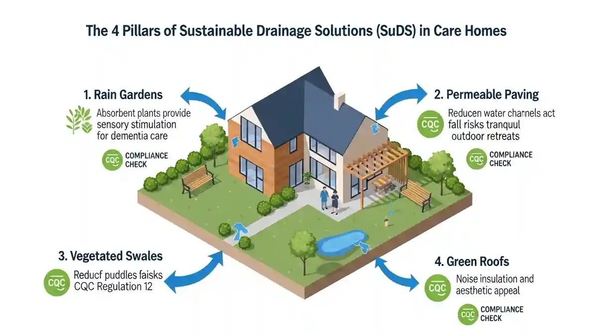 The future of sustainable drainage solutions CQC care home design is the integration of SuDS (Sustainable Drainage Systems). In Chipping Norton, Policy EN18 of the Local Plan encourages SuDS to manage surface water runoff, which often plagues the surrounding area.